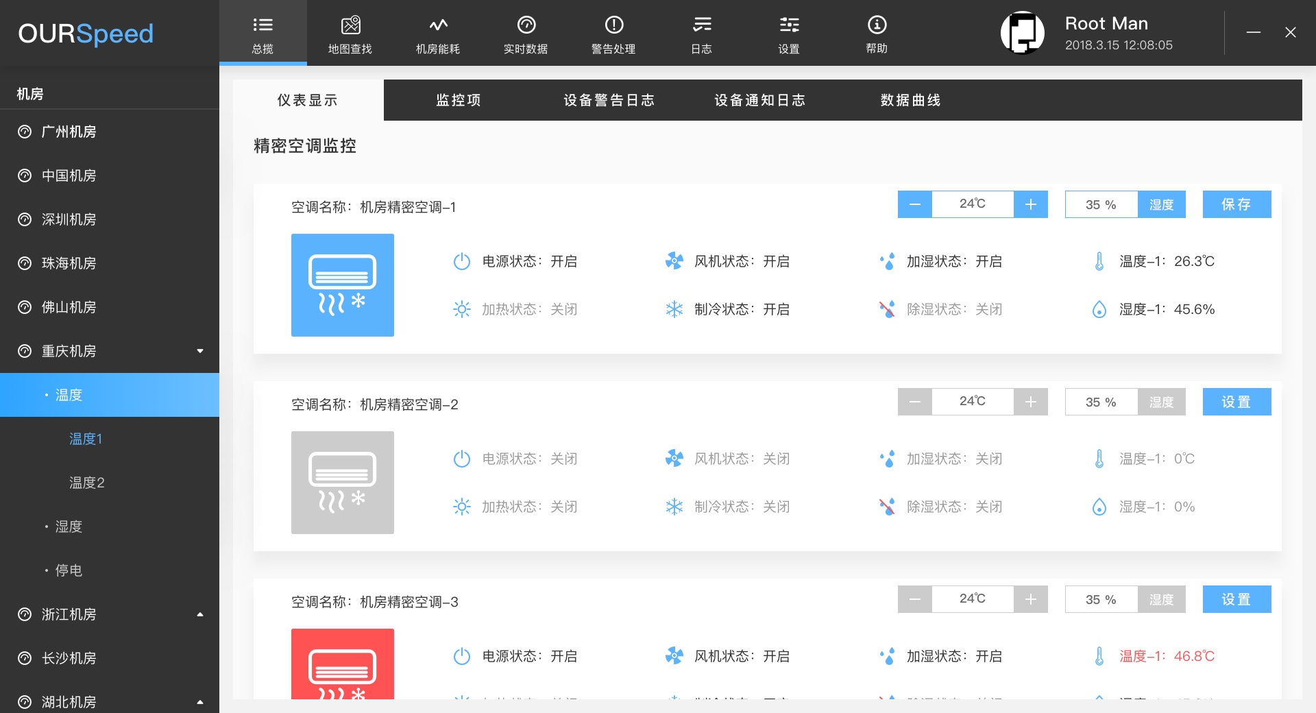 动力环境监控系统联动空调等设备来调节机房温湿度