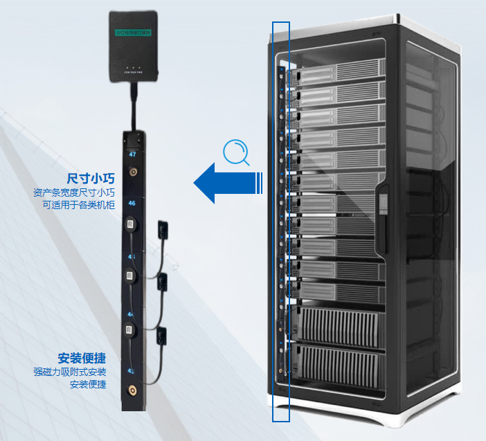 系统可实现 U 位的空间及状态监测、机柜温湿度环境监测、资产实时跟踪、资产毫秒级自动盘点、资产全生命周期管理等功能。